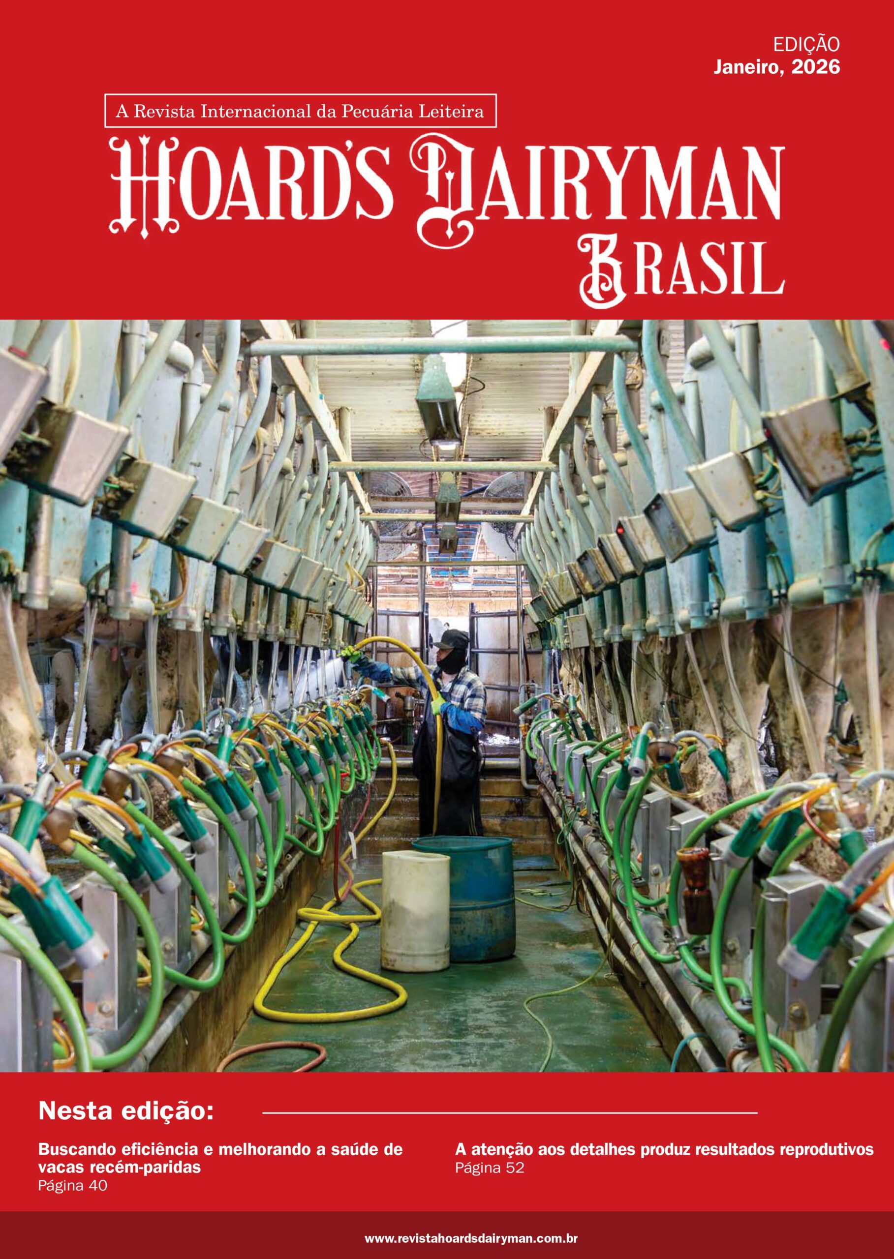 Nesta edição: Nesta edição, a Hoard’s Dairyman Brasil inicia o ano com uma abordagem técnica focada nos pontos críticos que determinam o desempenho produtivo, sanitário e econômico dos sistemas leiteiros logo no início do ciclo produtivo. A edição de janeiro concentra-se especialmente no manejo de vacas recém-paridas, destacando como decisões bem fundamentadas no período de transição influenciam diretamente a saúde, a produção de leite, a eficiência reprodutiva e a longevidade do rebanho ao longo da lactação. O conteúdo aprofunda temas que conectam nutrição, reprodução, sanidade e ambiente, reforçando que a atenção aos detalhes operacionais continua sendo um dos principais diferenciais para sistemas que buscam estabilidade produtiva e consistência econômica. A revista explora como ajustes finos em manejo, conforto animal e organização das rotinas impactam indicadores-chave, especialmente em sistemas mais intensivos e tecnificados. A edição também traz análises atualizadas sobre o mercado de gordura do leite e manteiga, contextualizando o cenário de preços, volatilidade e estratégias de proteção, além de discutir como decisões nutricionais e genéticas vêm moldando a composição do leite nos principais países produtores. No campo da gestão, o leitor encontra reflexões práticas sobre planejamento, tomada de decisão baseada em dados e organização financeira em um ambiente de incertezas crescentes. Completam a edição matérias sobre design de instalações, com foco em sistemas de ordenha automatizados, além de conteúdo técnico nacional abordando desafios sanitários complexos, reforçando a importância de diagnóstico preciso, prevenção e visão sistêmica. As seções tradicionais ampliam a leitura com fundamentos técnicos, análises de mercado, práticas aplicadas ao campo e respostas às dúvidas dos leitores. A edição de janeiro é, acima de tudo, um convite a começar o ano com clareza técnica, disciplina de manejo e decisões baseadas em números, alinhando eficiência biológica e eficiência econômica para sustentar resultados ao longo de 2026.